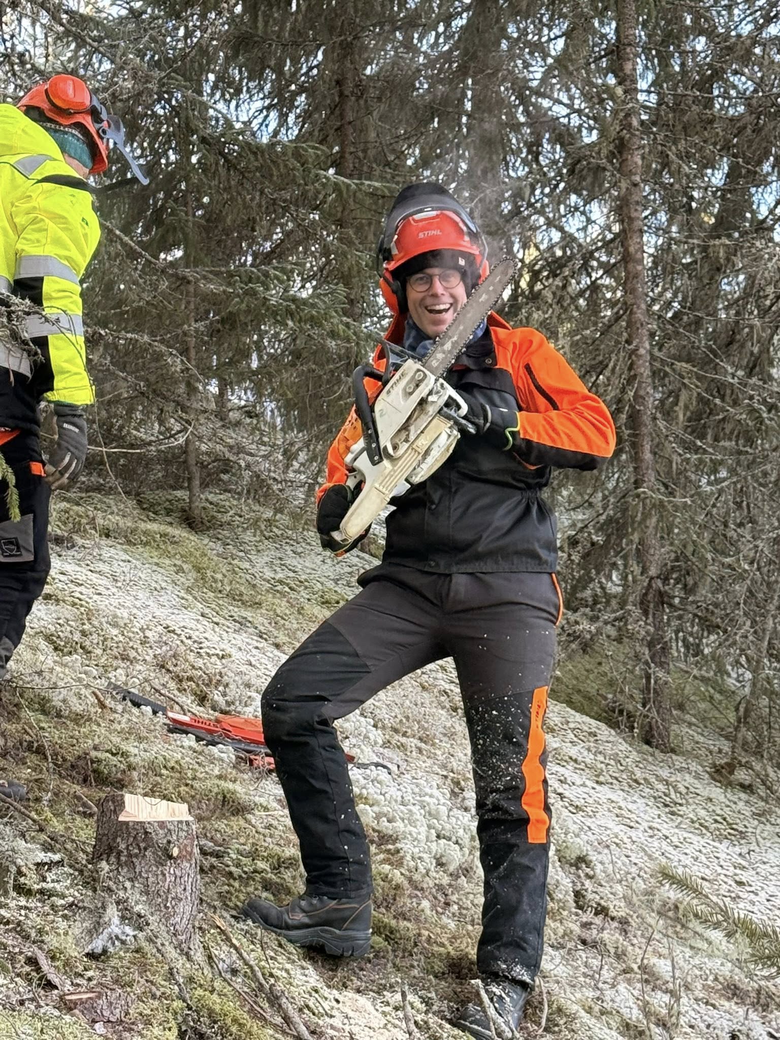 Neste opplevelse i programmet var et besøk til Nordstumoen, nå en avdeling under Storsteigen videregående skole. Nordstumoen er et heldøgnstilbud til elever med behov for særskilt tilrettelagt opplæring i videregående skole, der elevene lærer skolefag, øver på å bo alene, bli mer selvstendige og oppleve livsmestring. I tillegg til å få en opplysende orientering om skolens tilbud, og spise bakt potet ute i det fri sammen med elever og ansatte, fikk jeg lov til å felle et tre.