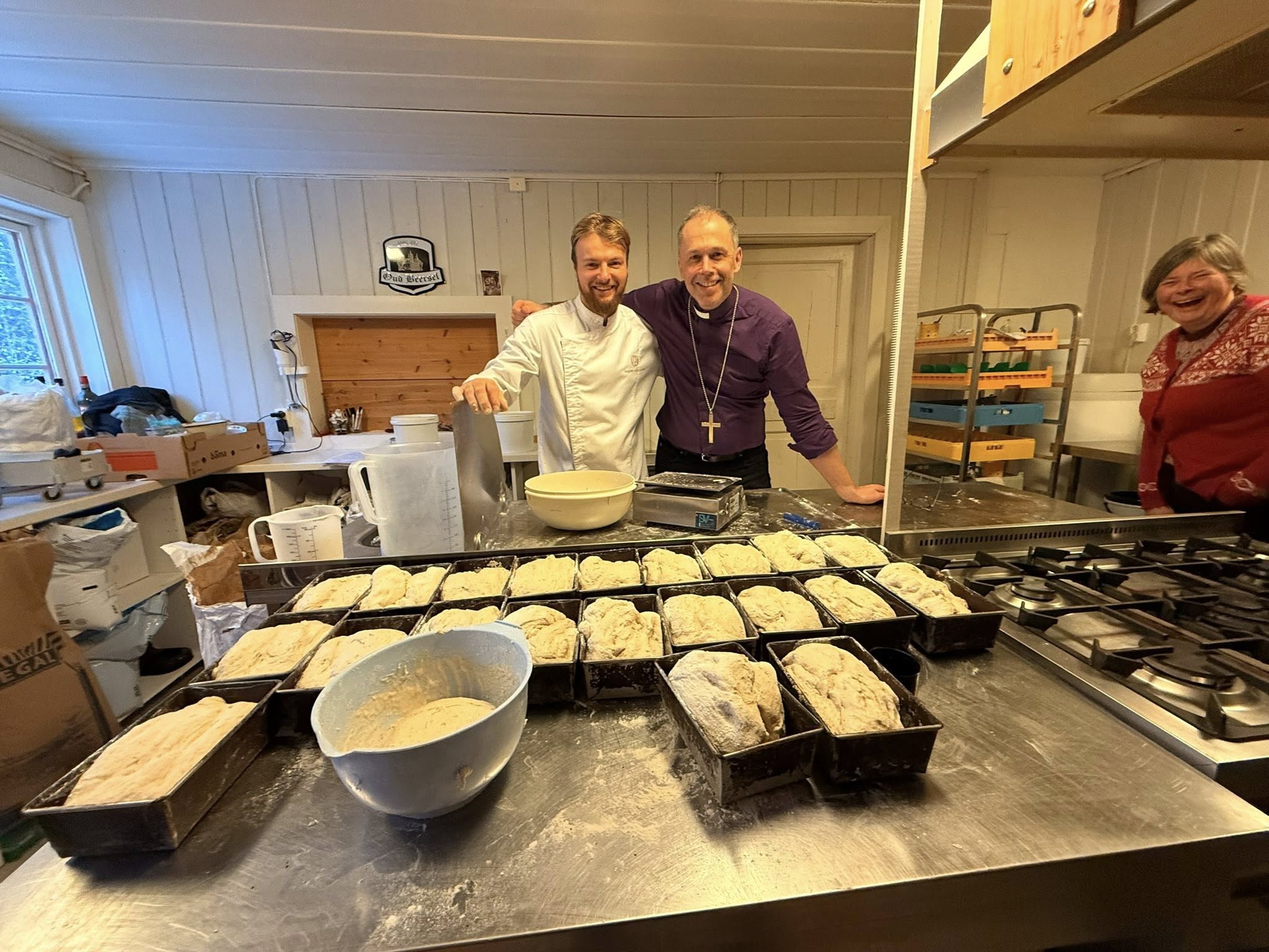 innehaver Miro van Vreckem. Biskopen med følge fikk både bidra i matlagingen, noe som gir et førstehands innblikk i produksjonen, og, ikke minst, smake på det gode resultatet. Det er imponerende hva den unge belgiske mannen har fått til i fjellbygda. Biskopen fikk også med seg en surdeigskultur hjem, og et lynkurs i brødbakerkunsten. Det er allerede produsert fire Sollia-brød på Hamar med surdeig og oppskrift fra Miro.