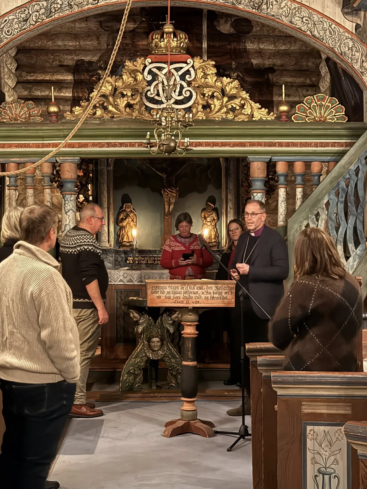 Håkon Edvard var også den som innledet avslutningen av rundturen i Sollia, da vi hadde tatt plass i vakre og rikt utsmykkede Sollia kirke, med sin historiske gjennomgang av den godt bevarte kirka fra 1738. Deretter ble det avholdt stemningsfull andakt i kirkerommet, hvor vi også fikk høre, blant flere, koret Corvus Corax.