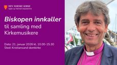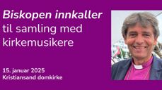 Biskopen innkaller til samling med kirkemusikerne 21. januar 2026 i Kristiansand domkirke