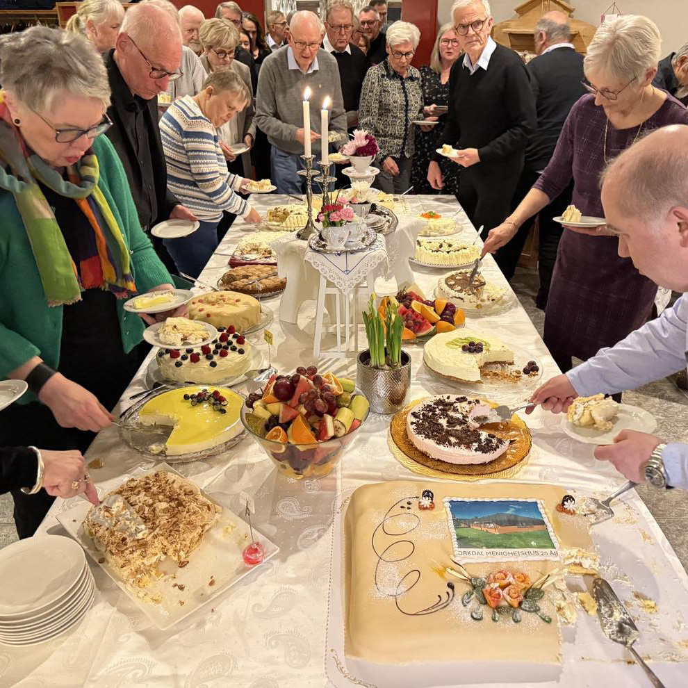 Fullt kakebord, må vite, når menighetshuset på Fannrem feires (Foto: Aud Kristin Saltvik Aasen)