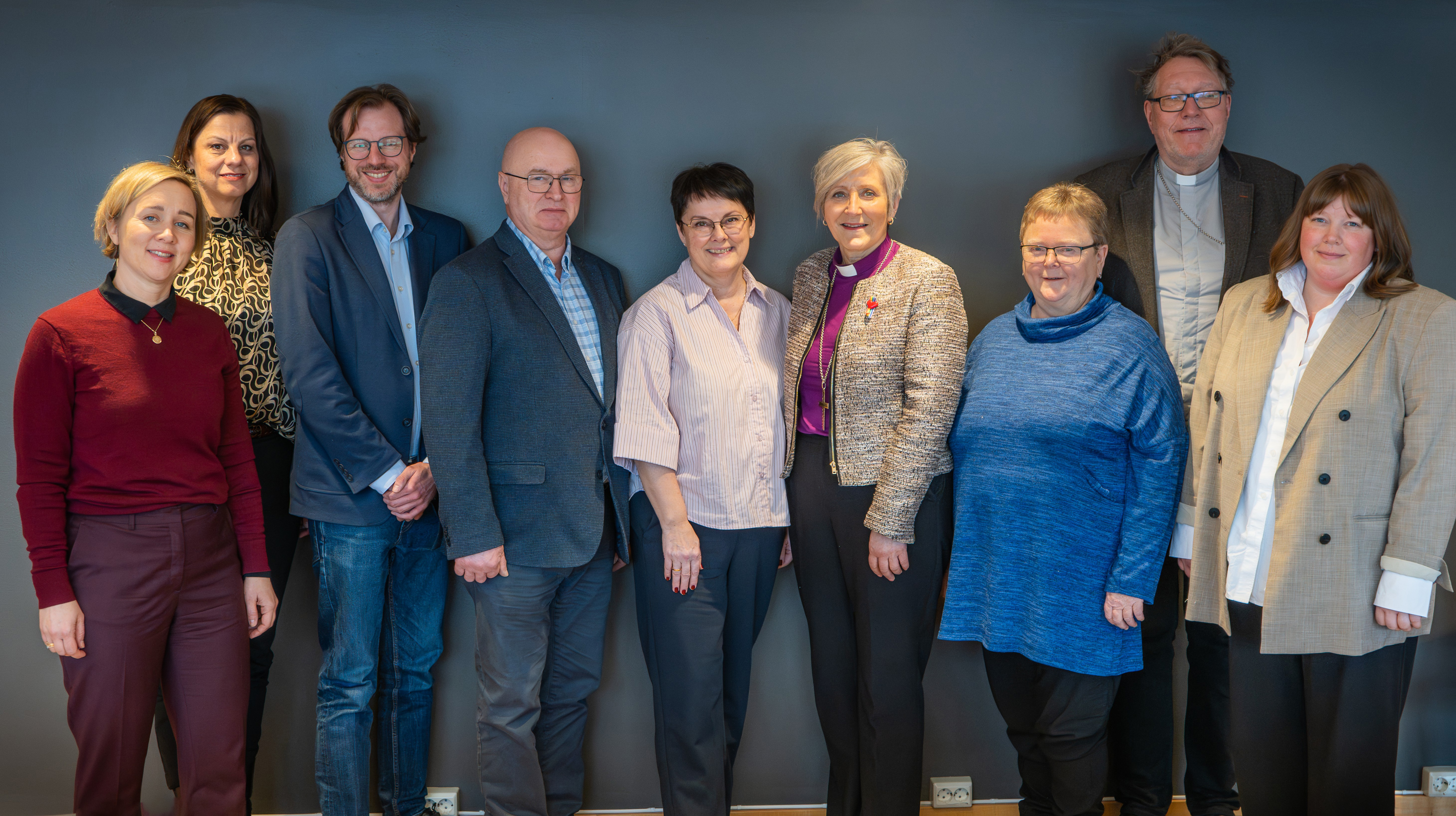 Dag 4 av bispevisitasen startet med biskopens møte med ledelsen i Orkland kommune. Fra venstre: Kommunedirektør Kristin Wangen, kirkefagsjef Aud Kristin Saltvik Aasen, kirkeverge Lars Væring-Skogrand, leder i Orkdal kirkelig fellesråd Arnt Bjørkhaug, ordfører Hanne Nyhus, biskop Herborg Finnset, kommunerepresentant i Orkdal kirkelig fellesråd Bente Høston Bostad, prost Dagfinn Thomassen og sokneprest Marita Hammervik-Owen (Foto: Simon Fallin Ramberghaug)