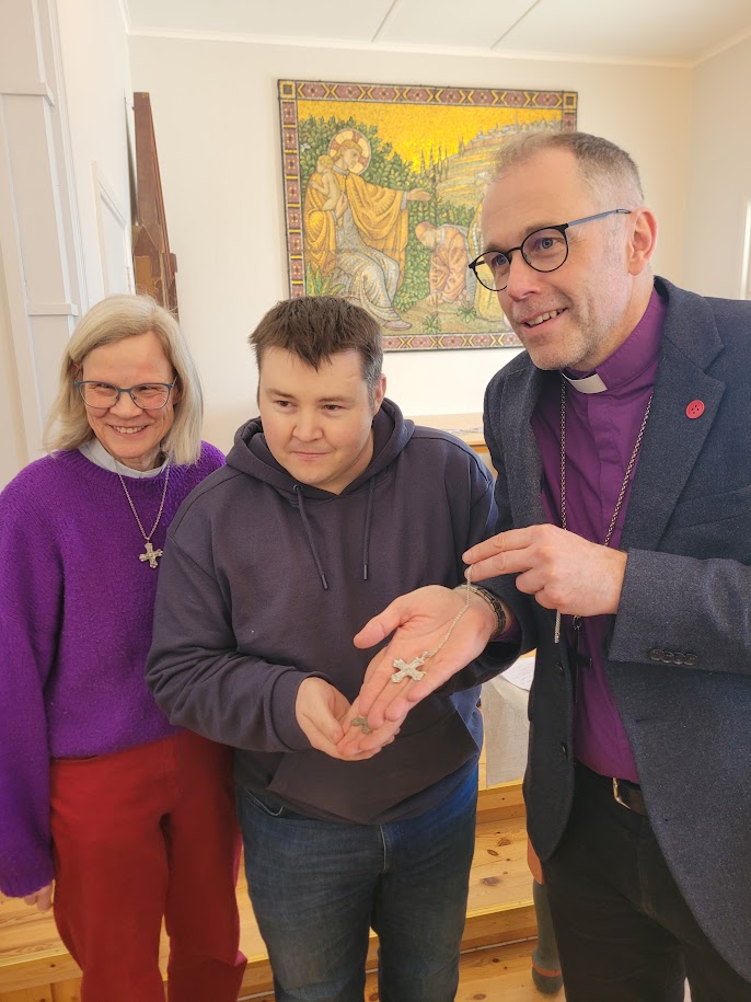 Biskopen fikk et replika av det eldste korset funnet i Østre Toten. Foto: Christian v. Harling.