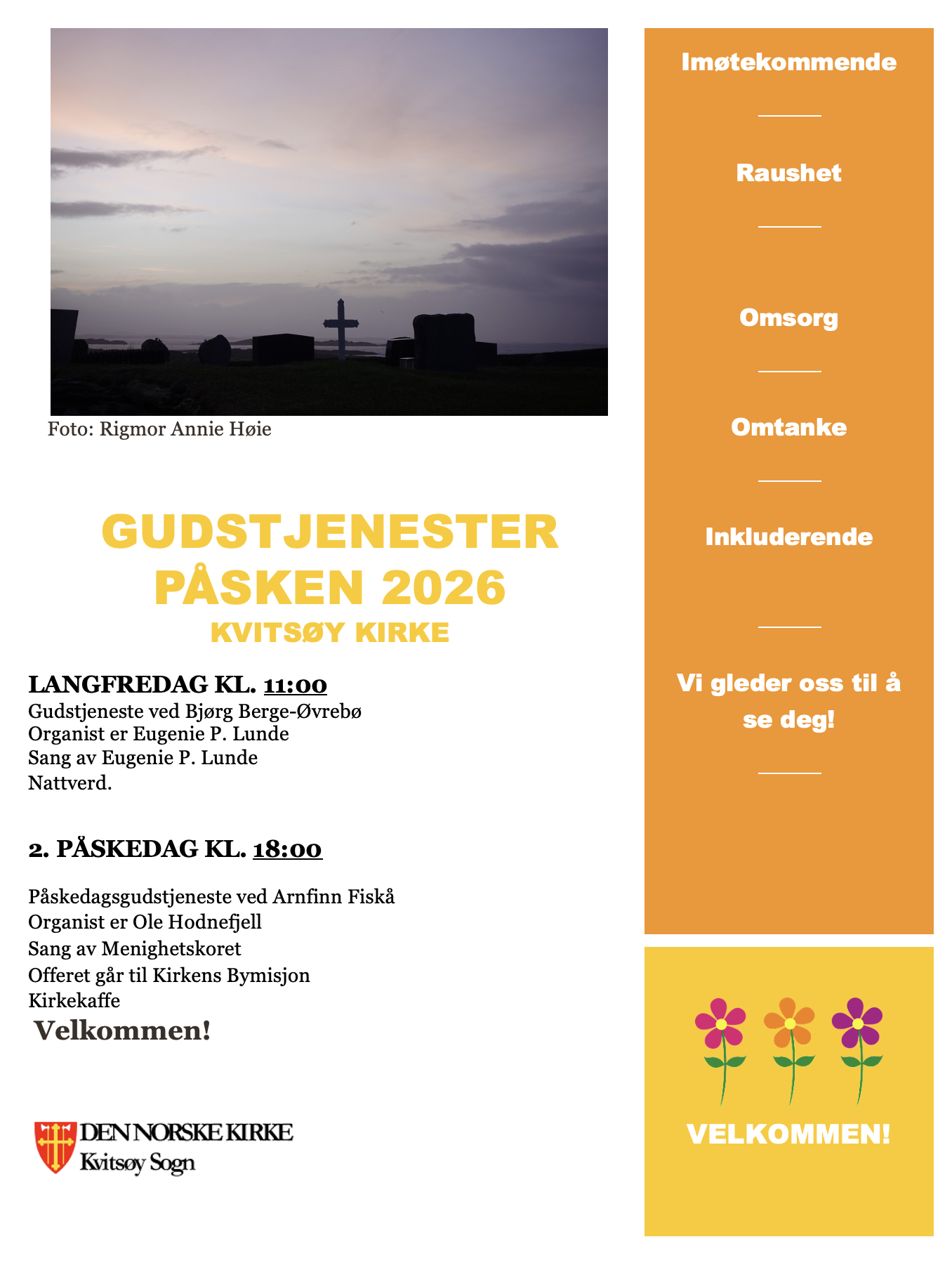 Gudstjenester påsken 2026 i Kvitsøy Kirke