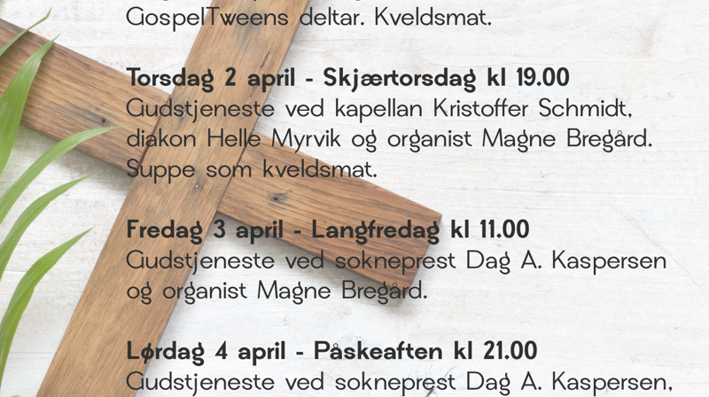 Det er lagt opp et variert program med flere arrangementer og gudstjenester gjennom hele påsken.