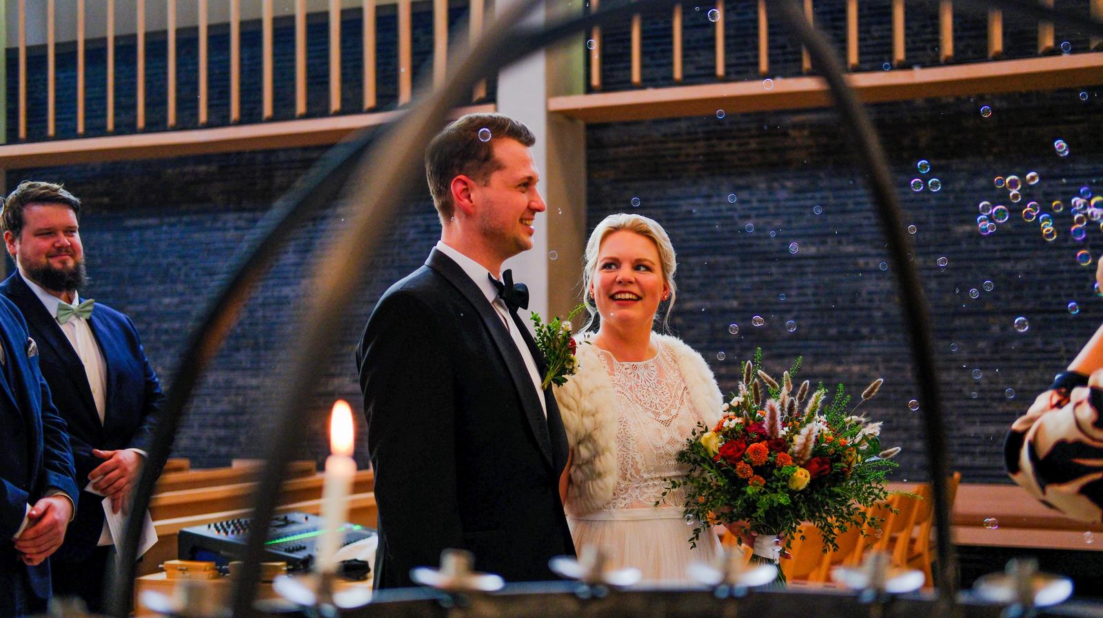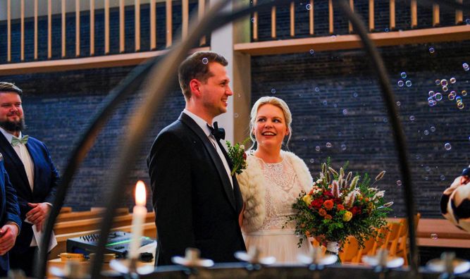Å gifte seg i kirka setter deres forhold og kjærlighet i en større sammenheng. Dere lover å holde sammen livet ut foran Guds ansikt, vitner og prest. Vi ber for dere og dere får Guds velsignelse over livet deres sammen videre.Et bryllup i kirken kan gjøres storslått og med mange gjester.