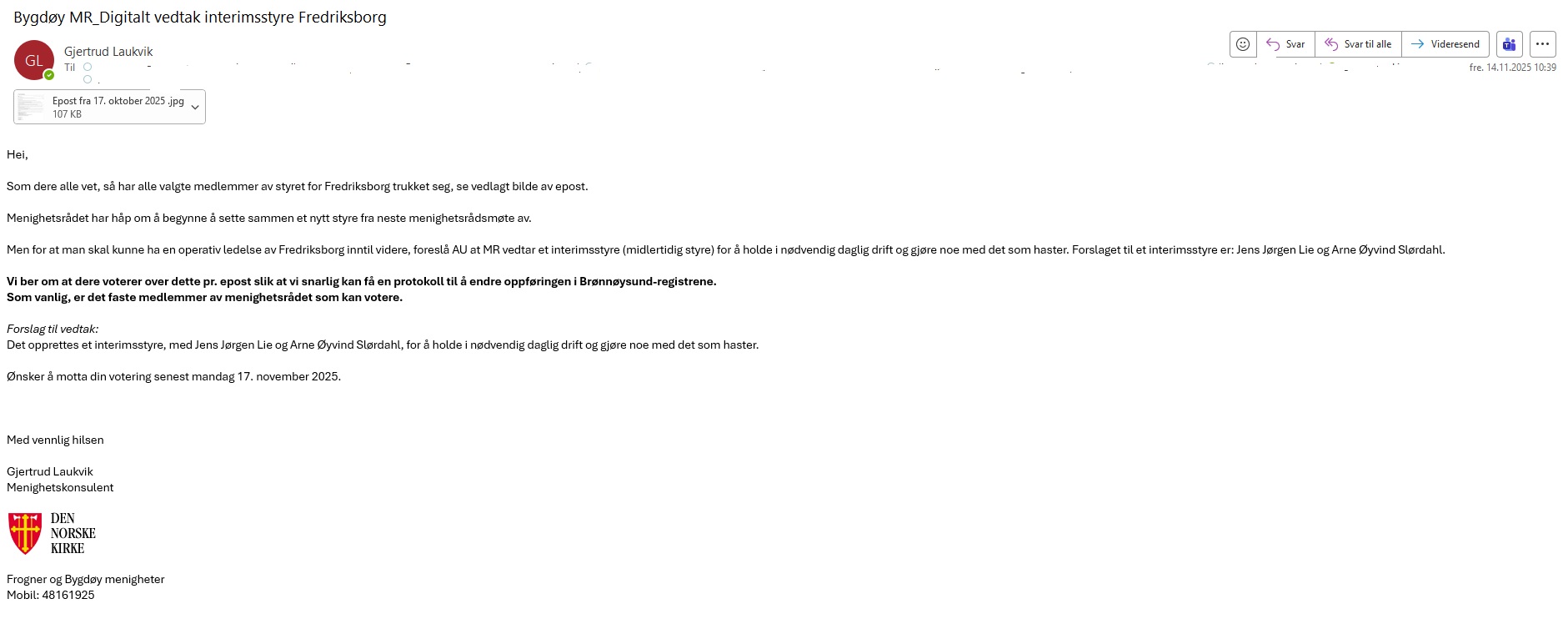 Dette gjelder oppgaver som menighetsrådet har av mer forvaltningsmessig art: