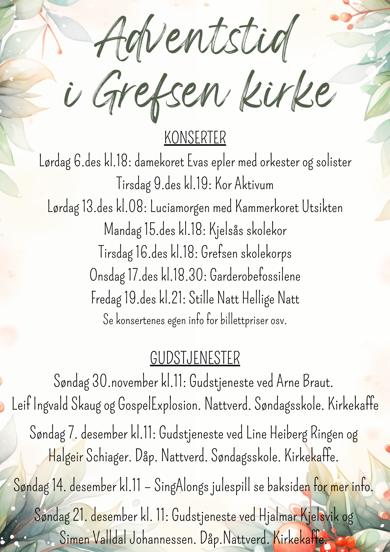 Det skjer mye i Grefsen kirke i adventstiden - konserter med lokale korps og kor, Supermandag med julevandring, gudstjenester og SingAlongs julespill. Les mer her