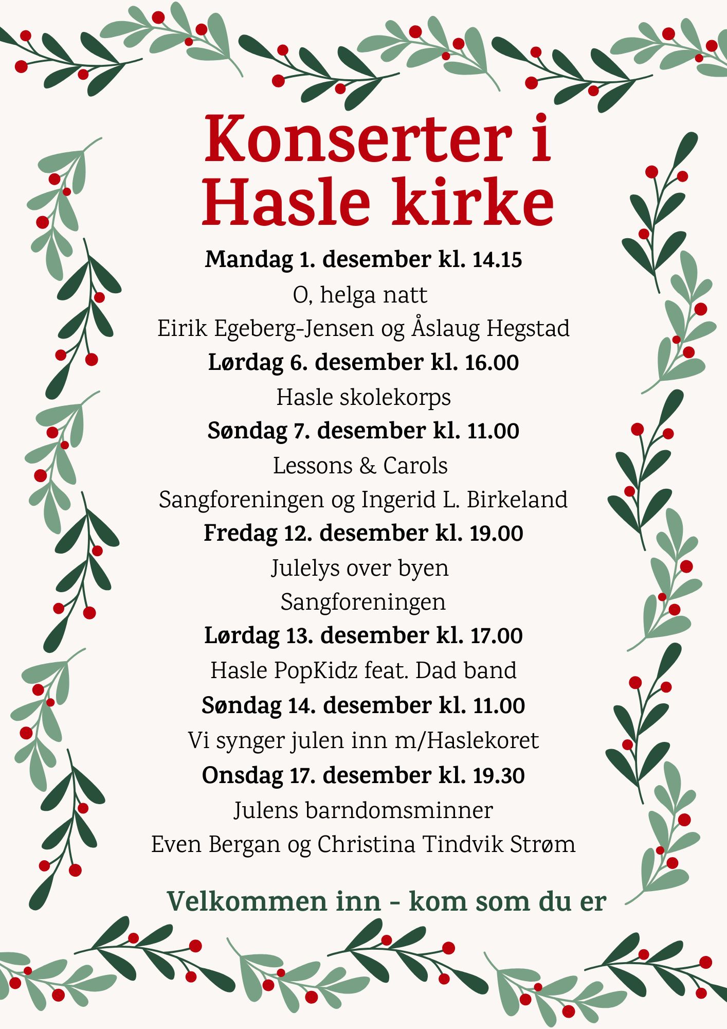 Julekonserter i Hasle kirke