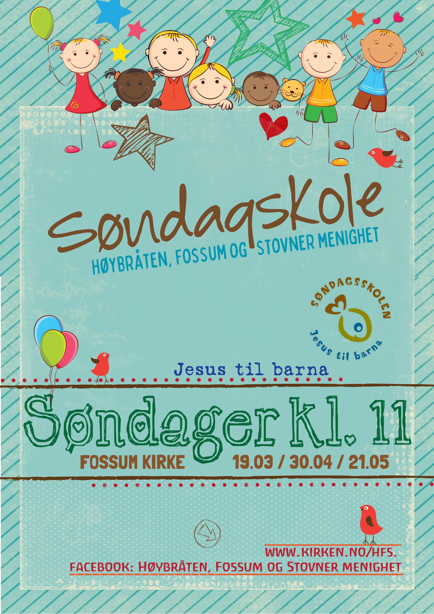 Velkommen til søndagskole hver fellesgudstjenestene i vår. Se datoene og kirke under.