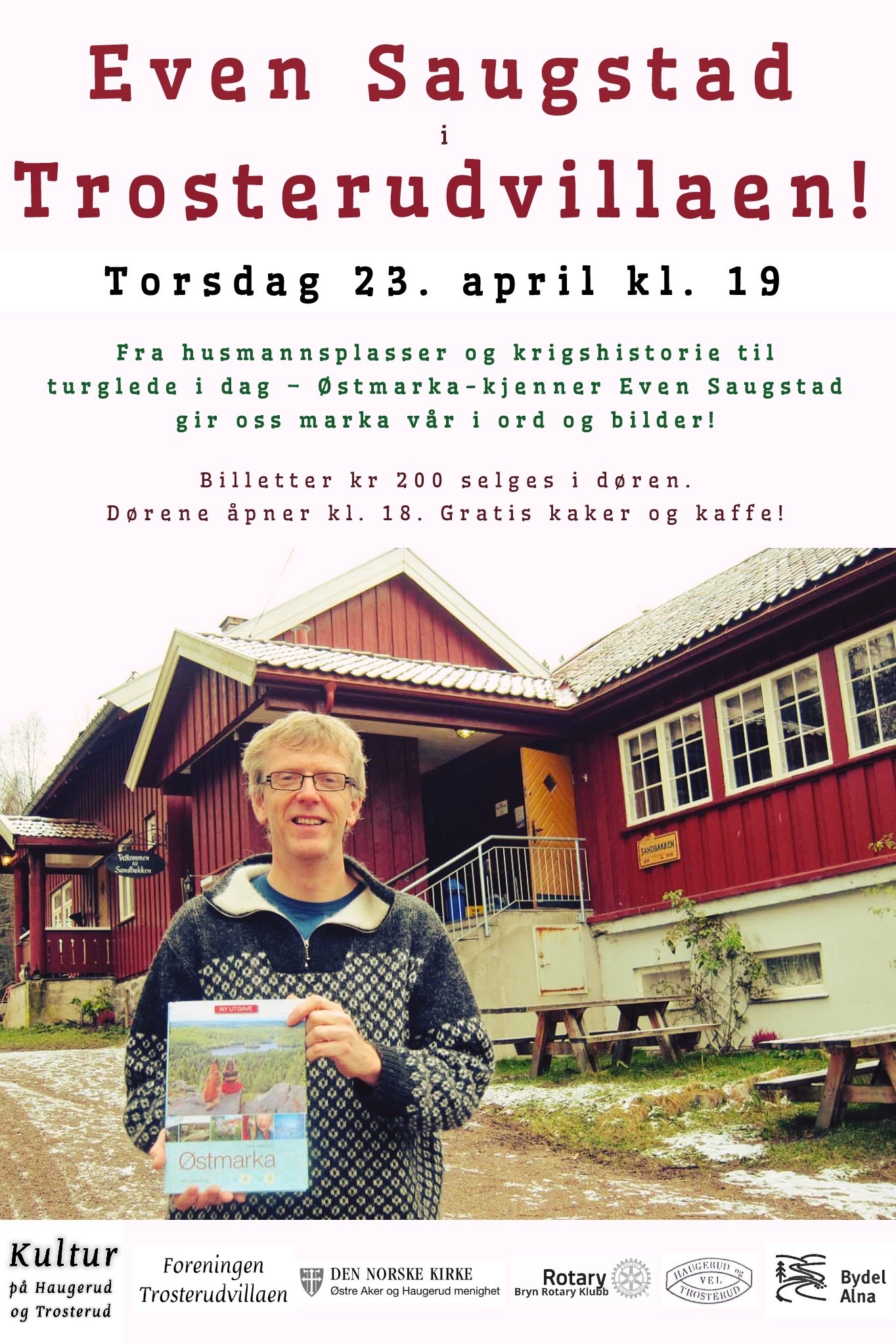 Billetter kr. 200,- selges i døra. Gratis kaker og kaffe.