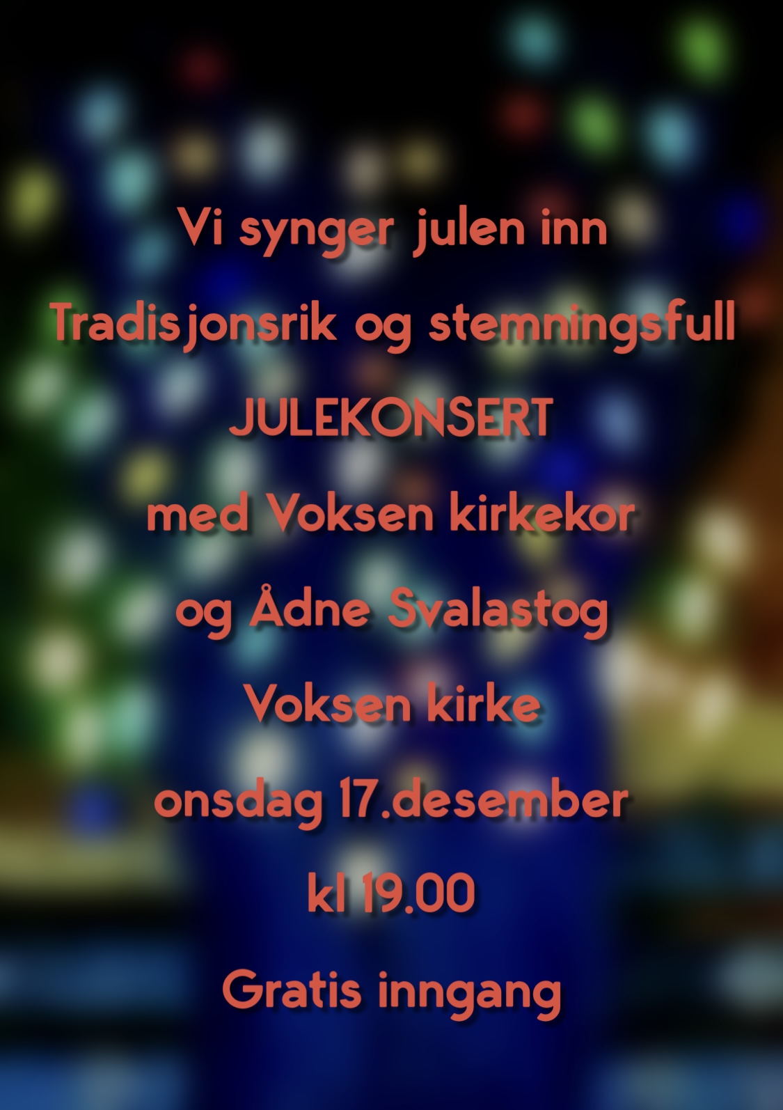 Velkommen til stemningsfull julekonsert med Voksen kirkekor og Ådne Svalastog onsdag 17. desember kl 19.00