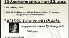 10.7.2021Kl 17.00: Toner og ord i Os kirke ved Gro Kjelleberg Solli. Diktlesning blir det også.