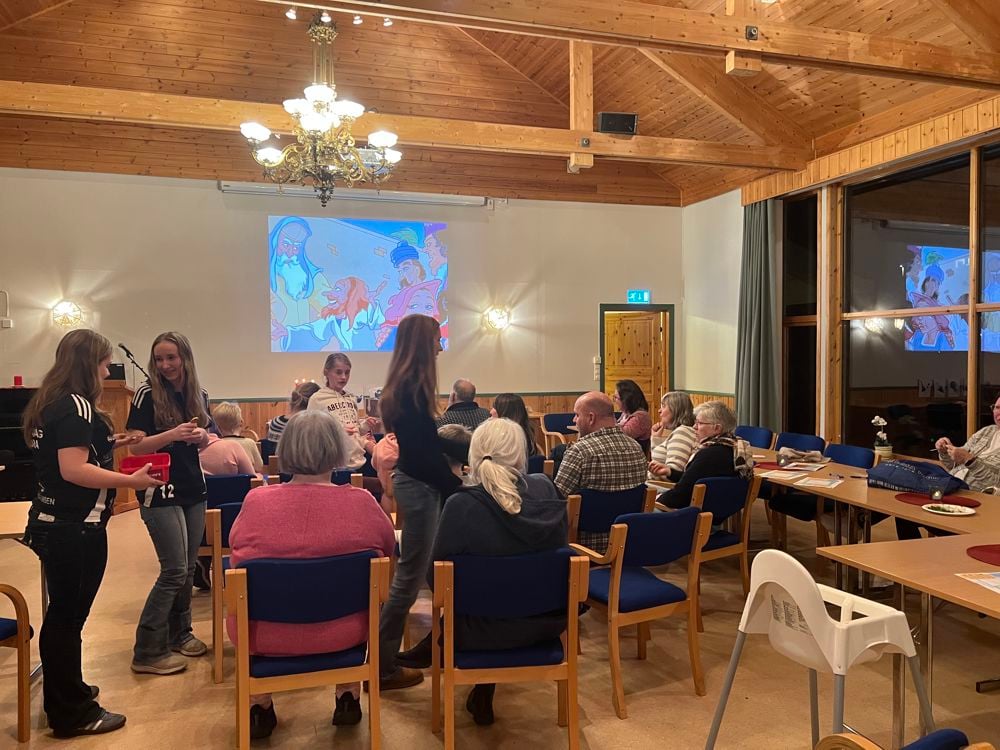 Tema denne dagen var “Sauen som vart funnen igjen”. Vi laget etande sauebilete som vart fort ete opp av nokre, og gullmyntar med teksten: Gull verdt for Gud. Ei god påminning om at vi er elska. Godt smakte dei òg. Elles hadde dei største barna stafett og fleire generasjonar prøvde det nye fotballspelet. Vi ser fram til fleire myldredagar utover året.