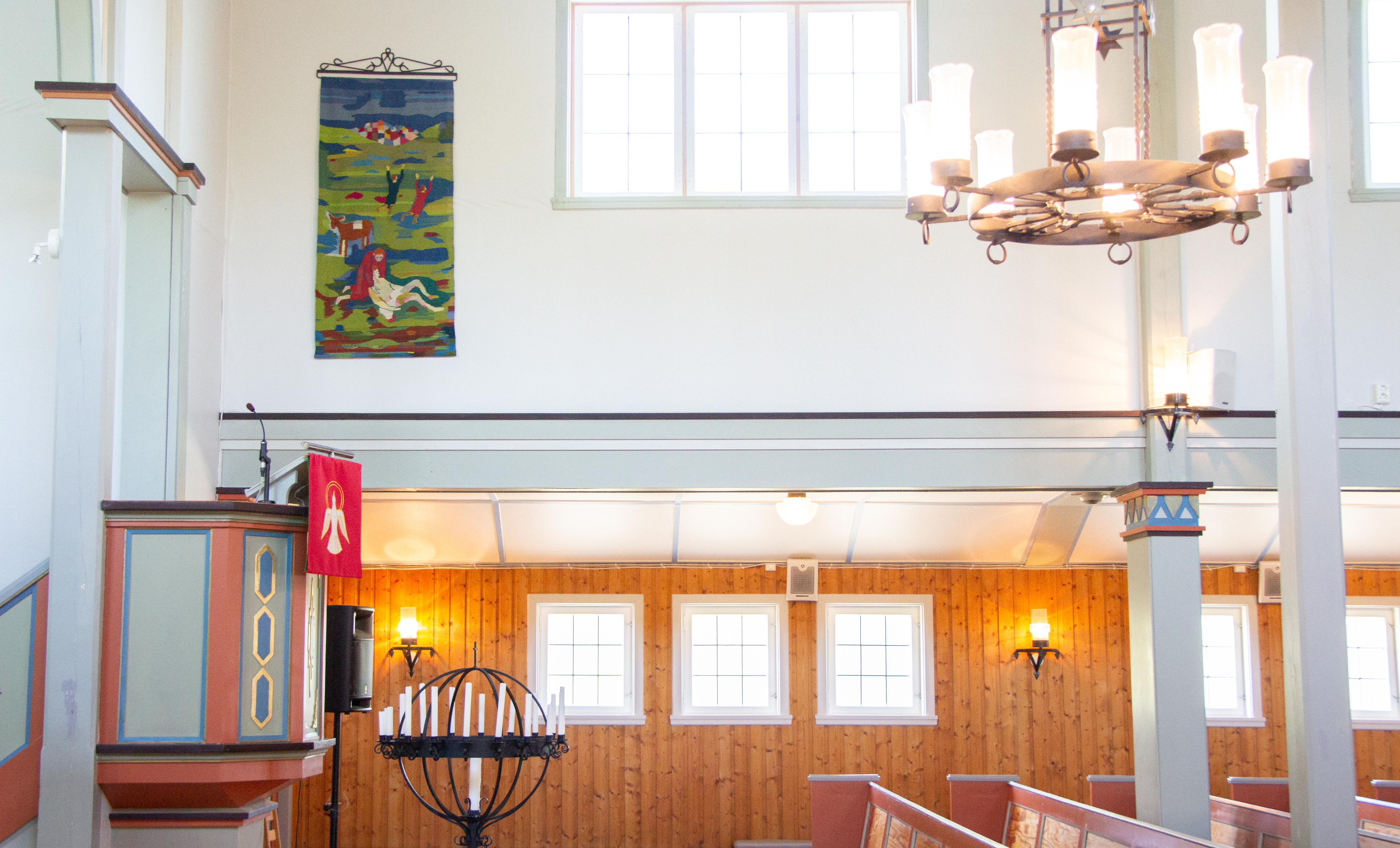 Eit kunstverk får ny plass: veven i Kausland kyrkja er flytta