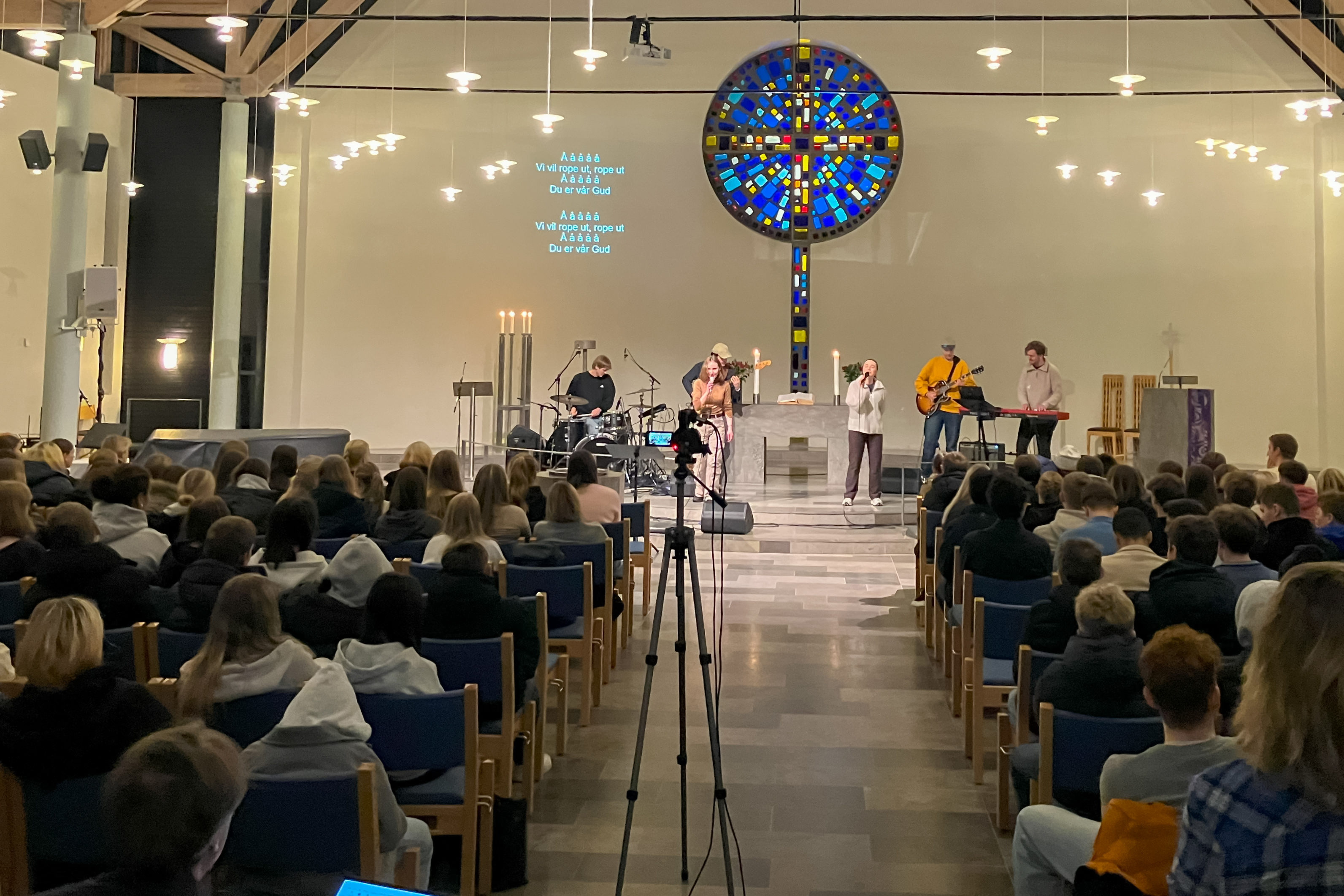 Kyrkja full av konfirmantar på "T15 - saman"