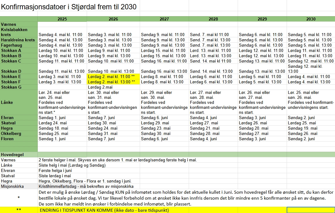 ** ENDRING I TIDSPUNKT KAN KOMME (ikke dato - bare tidspunkt).