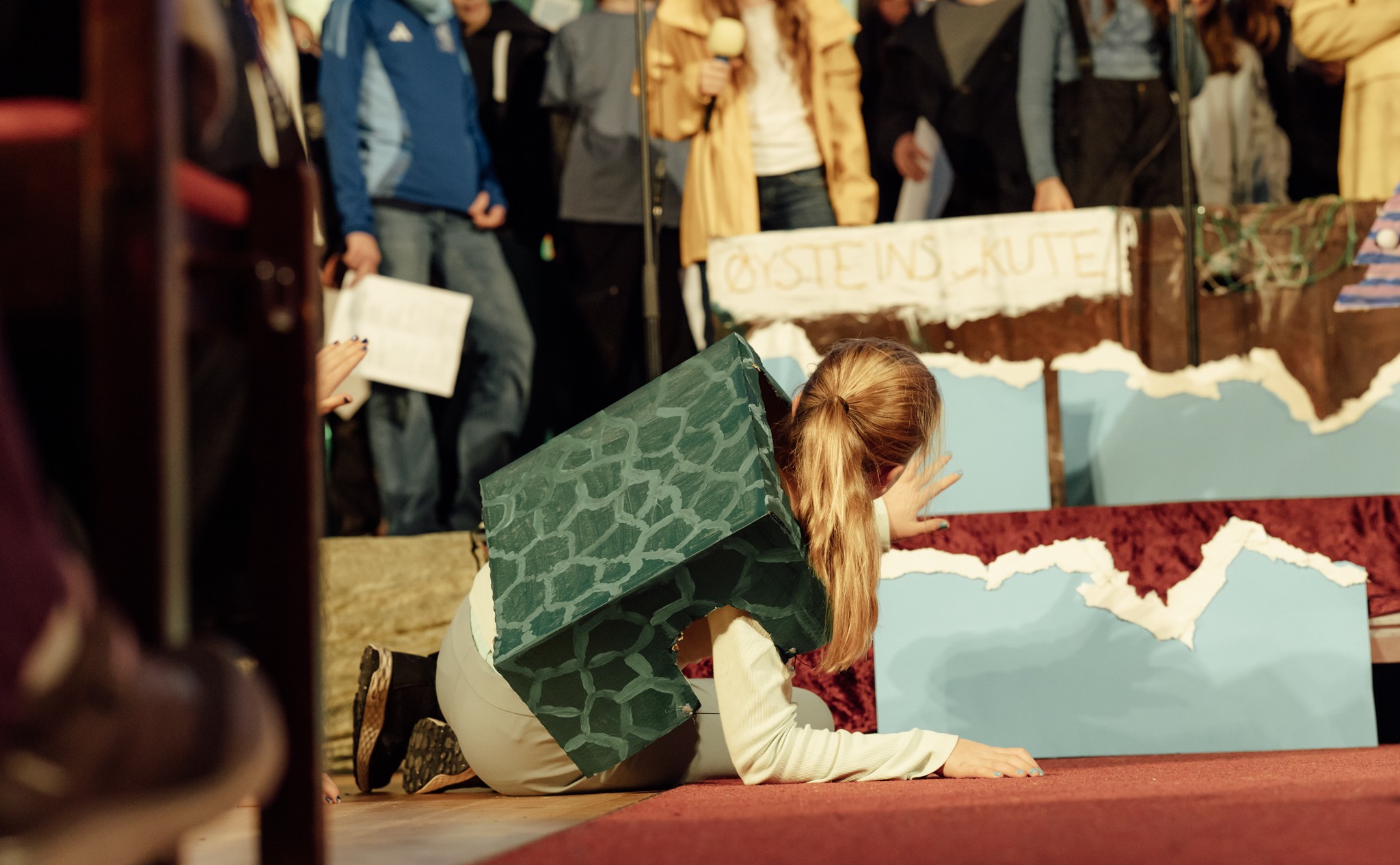 De har øvd masse og lagd mange kostymer og rekvisitter, krabber, fisker, sel og en båt!