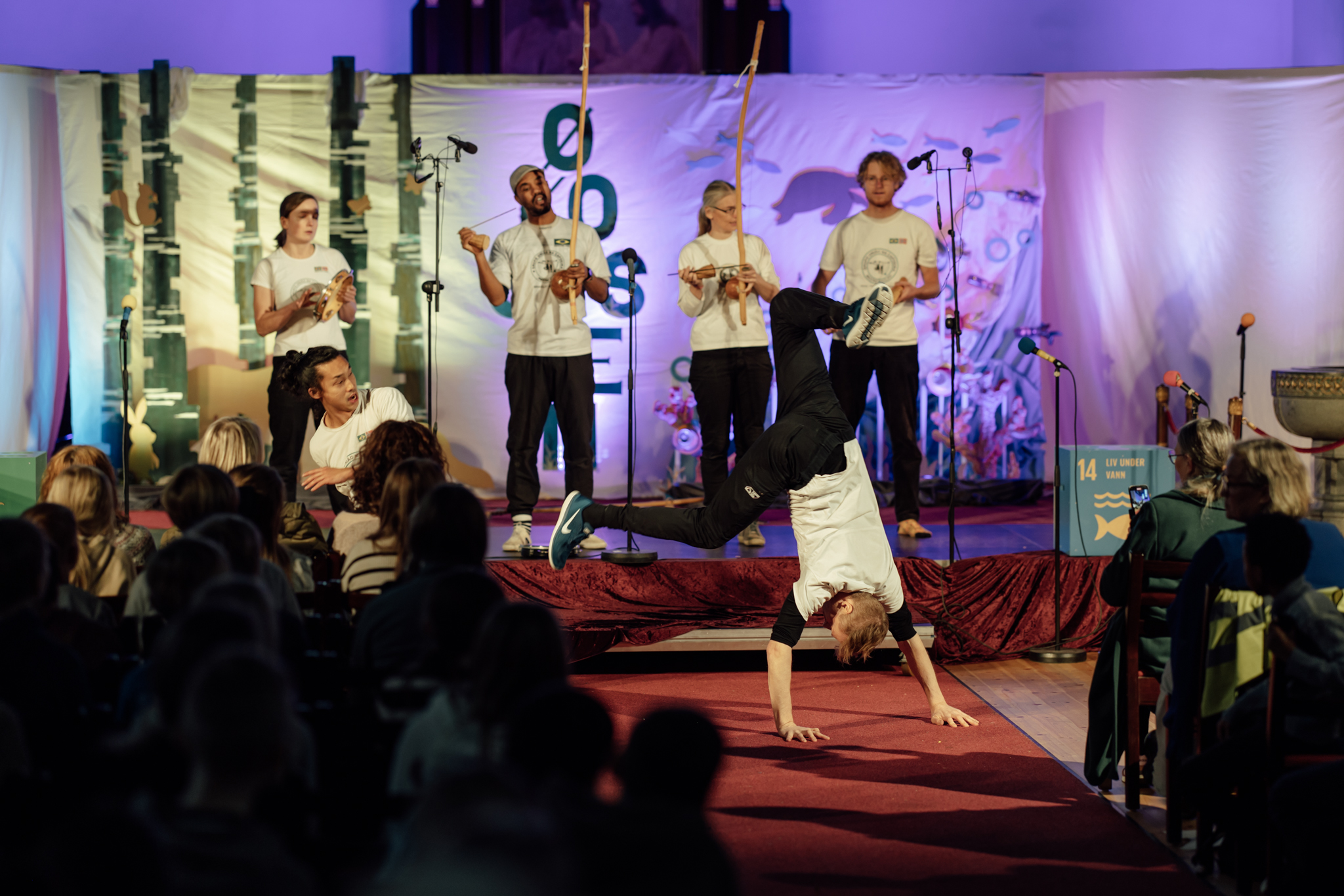 Elevene var på forhånd utfordret til å utforske temaene Livet i havet og Livet på land, mål 14 og 15 i Barnekonvensjonen. Her fremførte de sine bidrag for et engasjert publikum, blant annet med varaordfører Erling Moe på første rad.