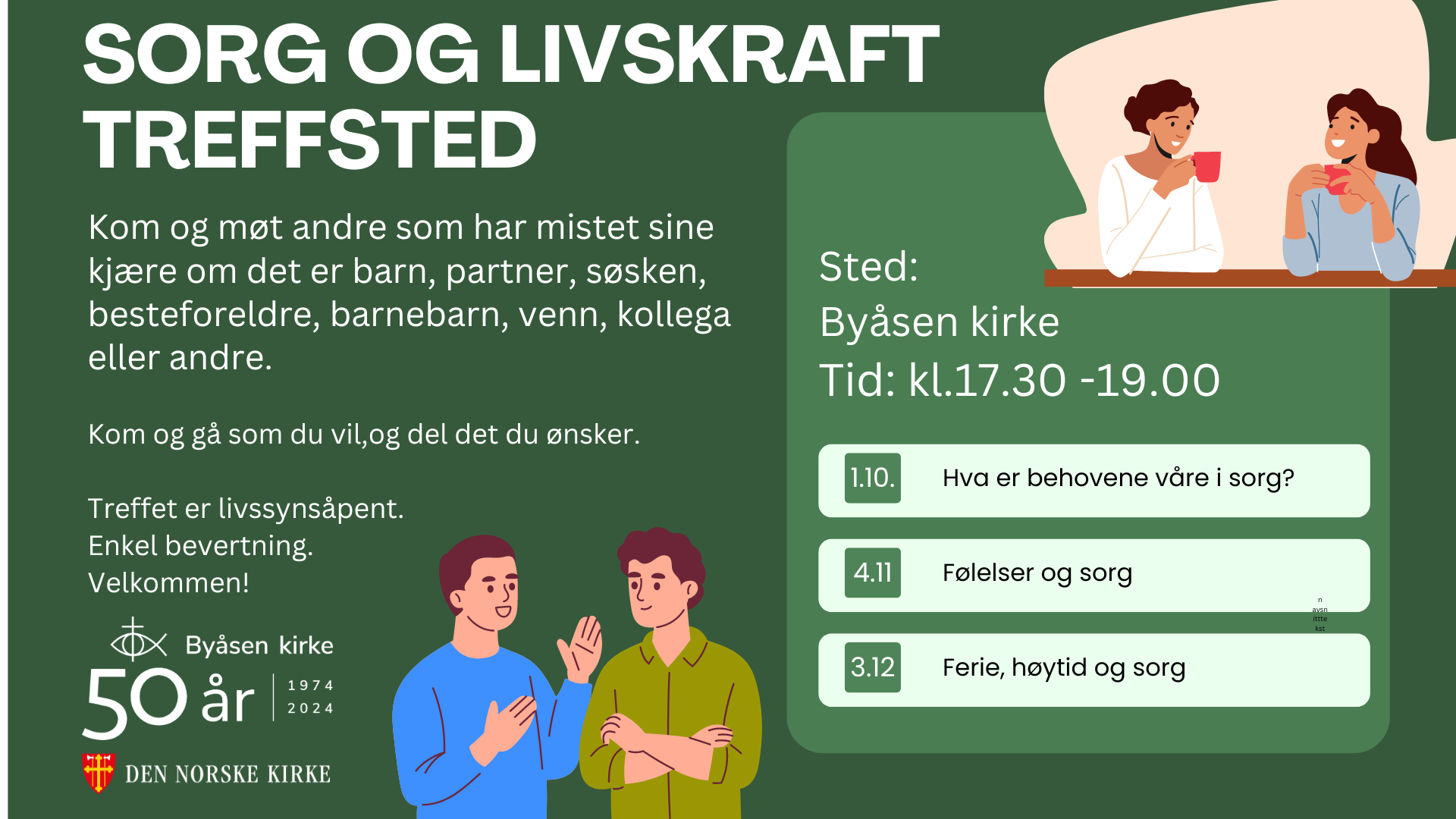 2.10.2024Nystartet treffsted i Byåsen kirke for deg som har mistet noen