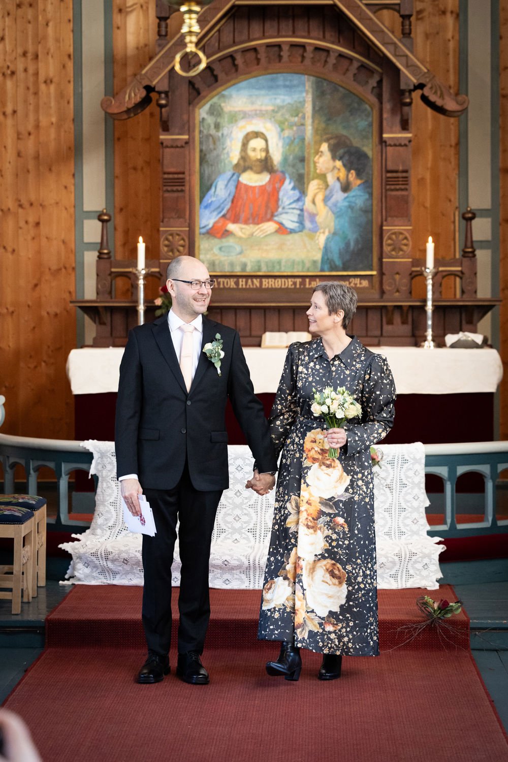Seremonien da Åse Veiseth og Martin Johnsen ga hverandre sitt ja, var enkel og intim – uten forlovere, men med ansatte i kirken som vitner.