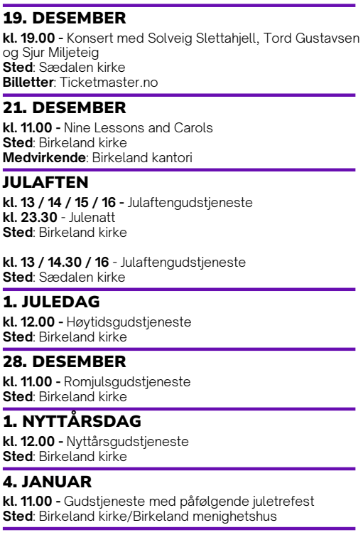 Her er resten av juleprogrammet for Birkeland og Sædalen: