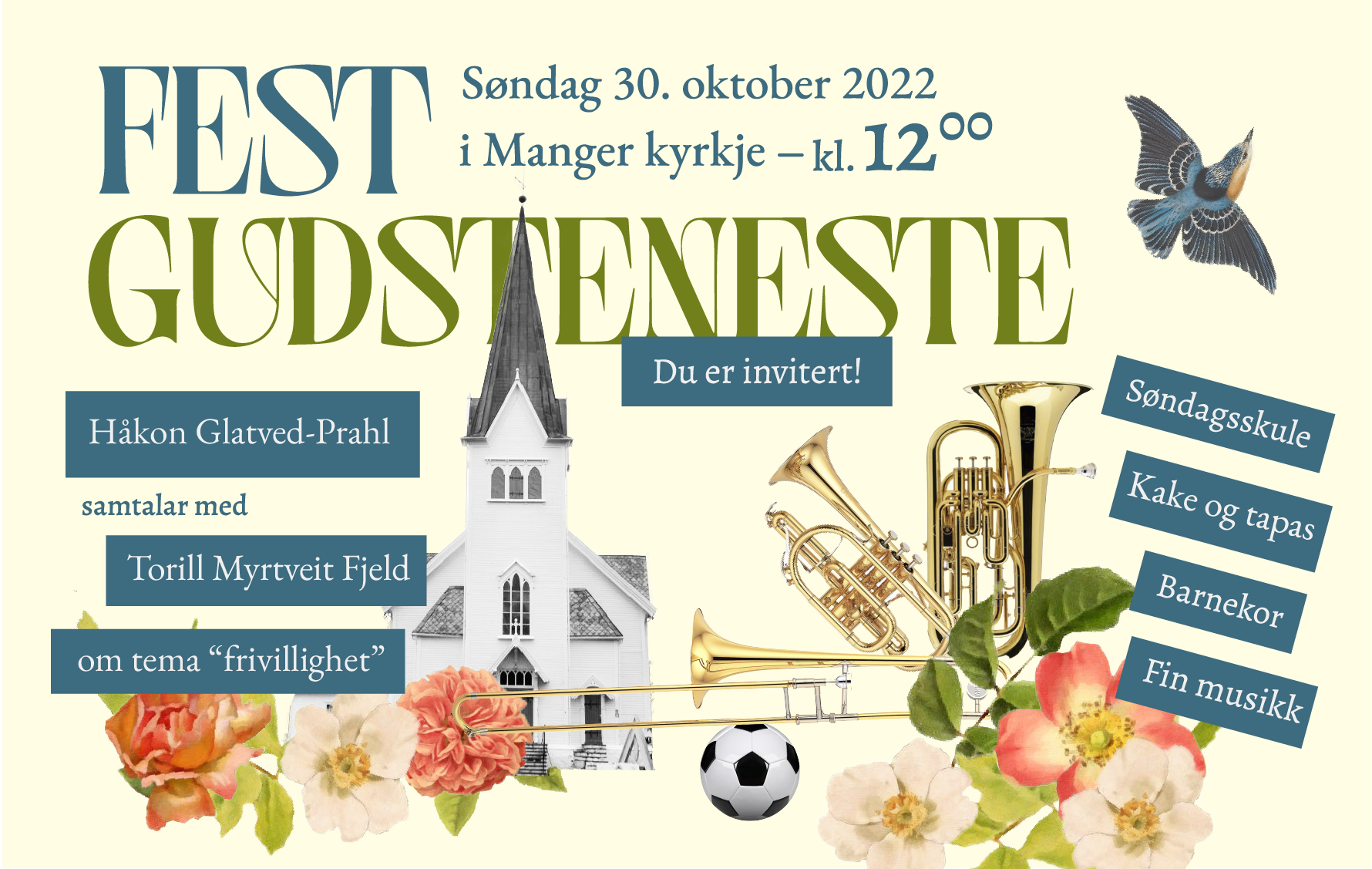 16.6.2023Vi ynskjer alle vel møtt til gudsteneste i Manger kyrkje søndag 25.juni kl. 11:00!