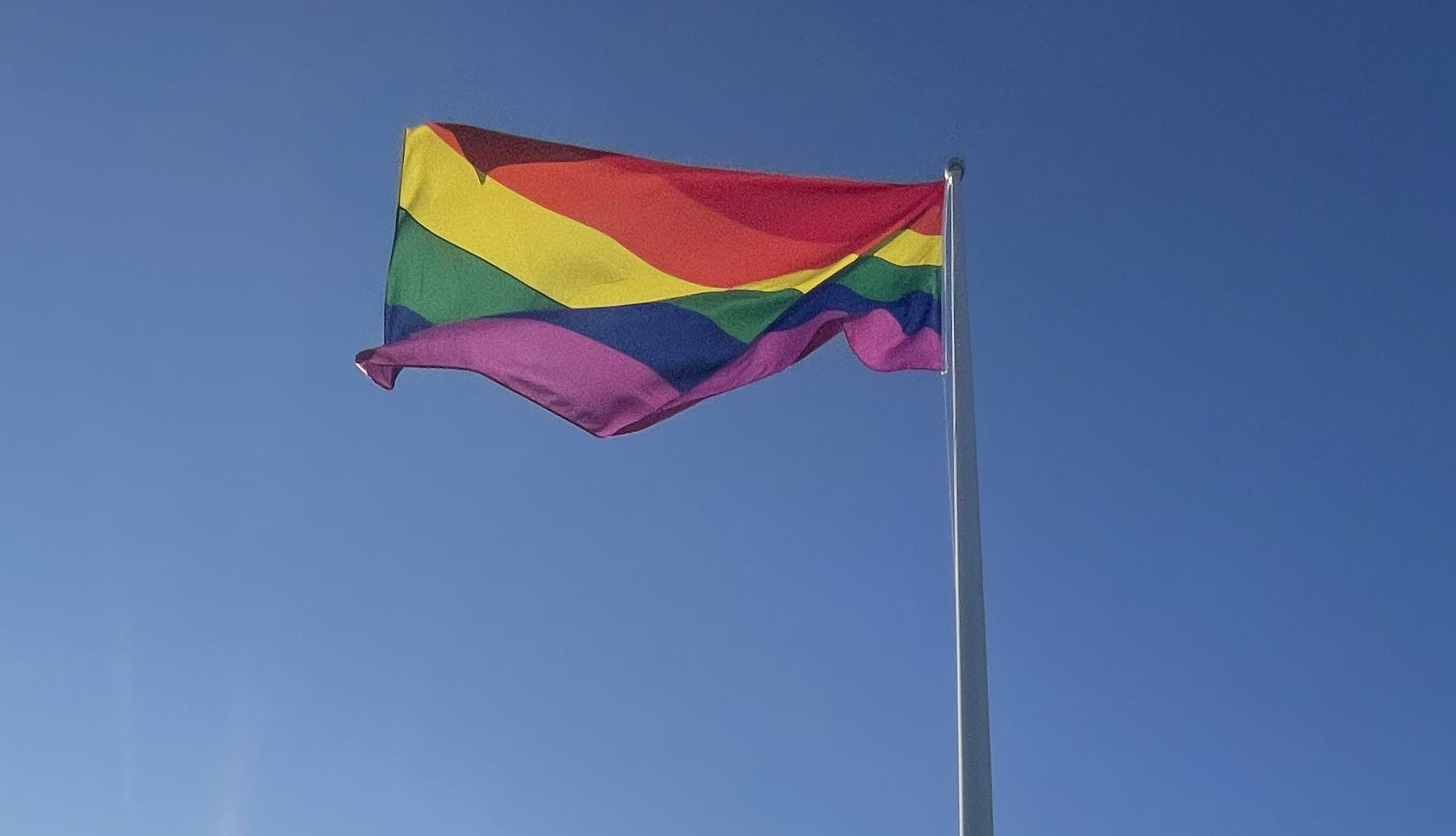 Regnbueflagg ved Asker kirke