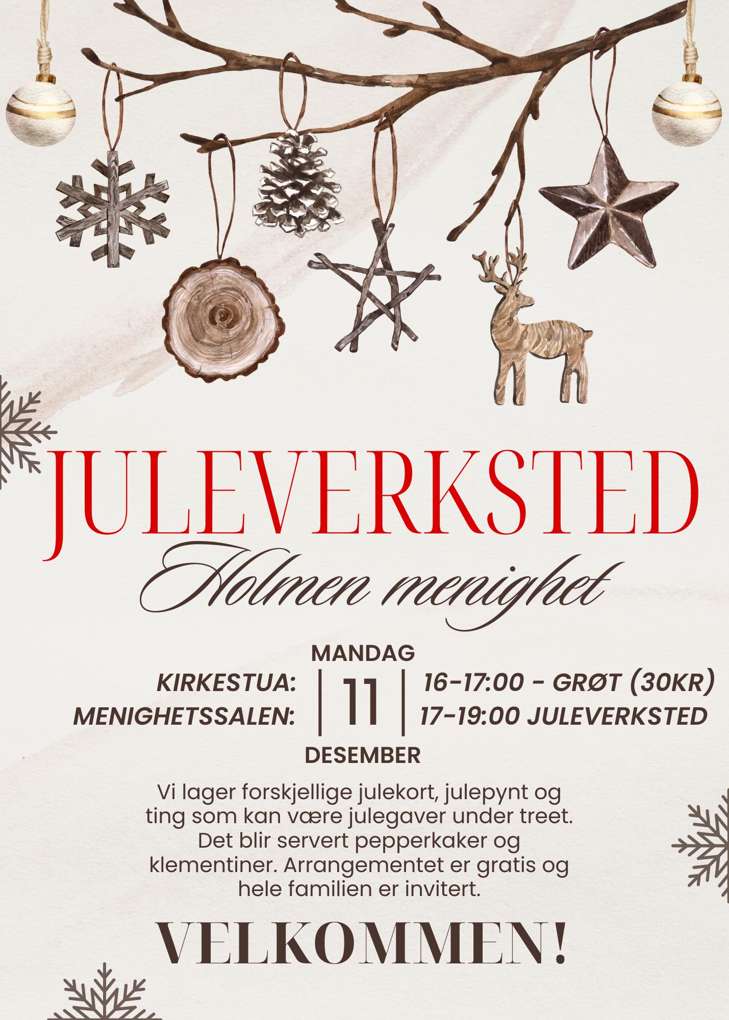 Velkommen til gratis juleverksted og salg av julegrøt før vi starter opp kl.17.00!