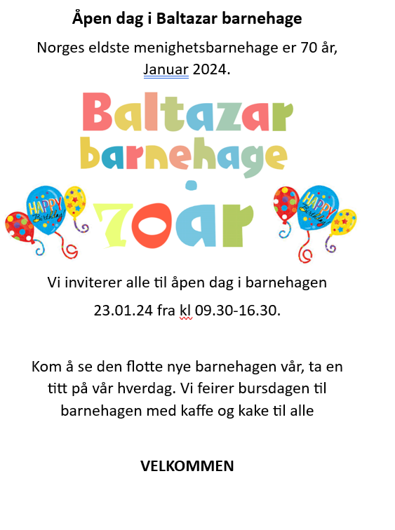8.1.202421. januar blir det feiring og åpen dag i Baltazar barnehage.