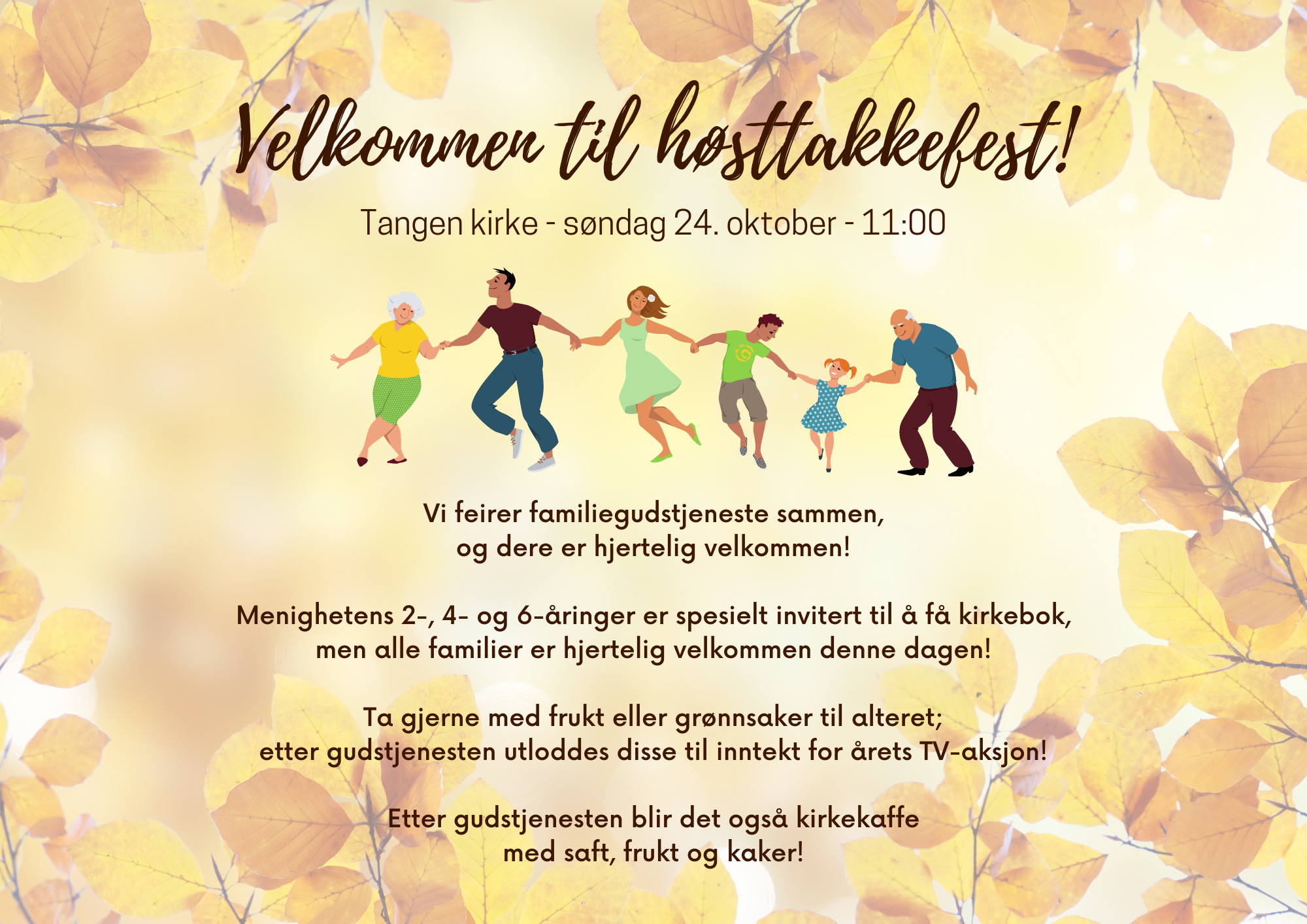 19.8.2021Koselig klubb for småtrinnet inkludert pølser for hele familien, annenhver torsdag i Tangen kirke.