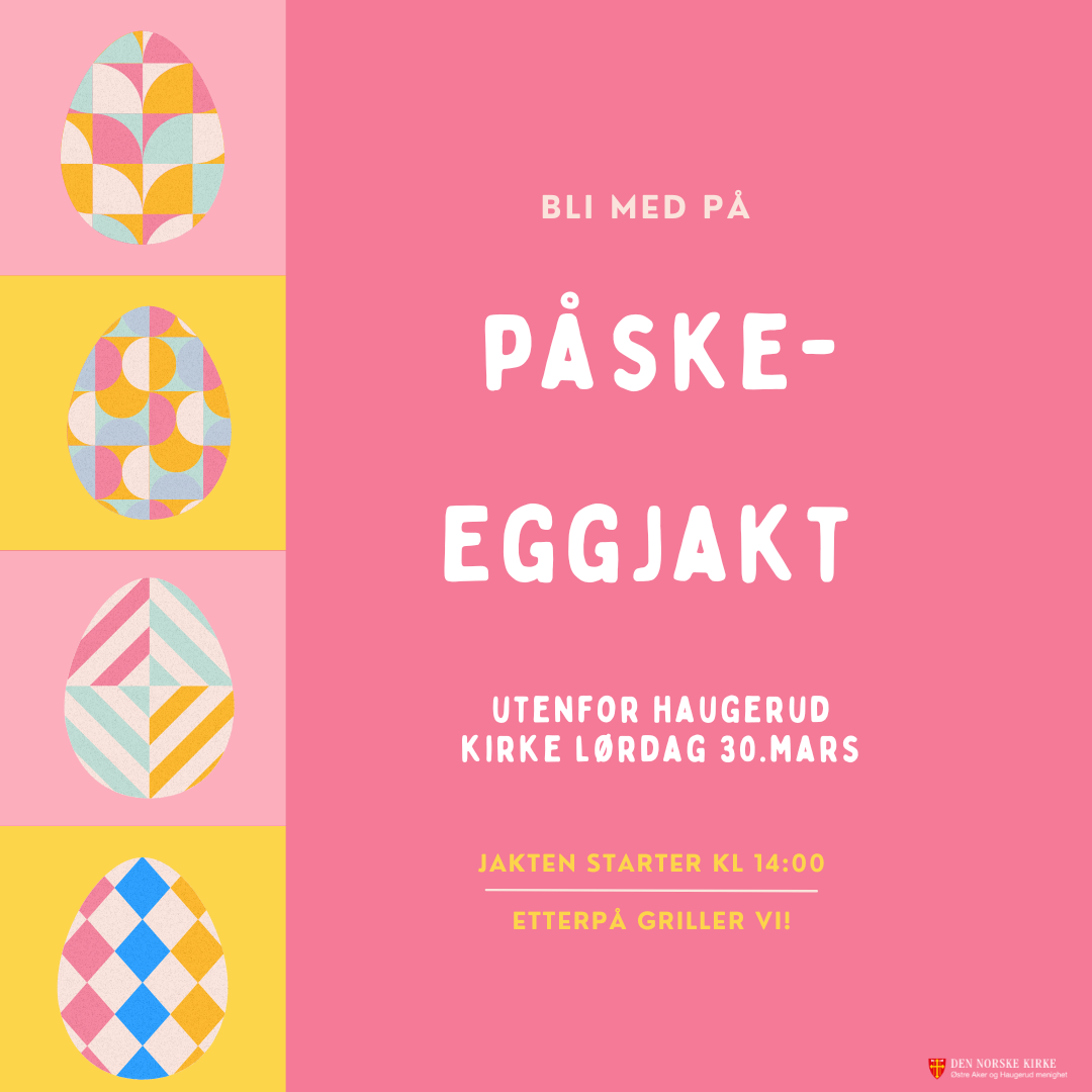 1.3.2024Påskeeggjakt utenfor Haugerud kirke lørdag. 30mars. kl. 14:00!