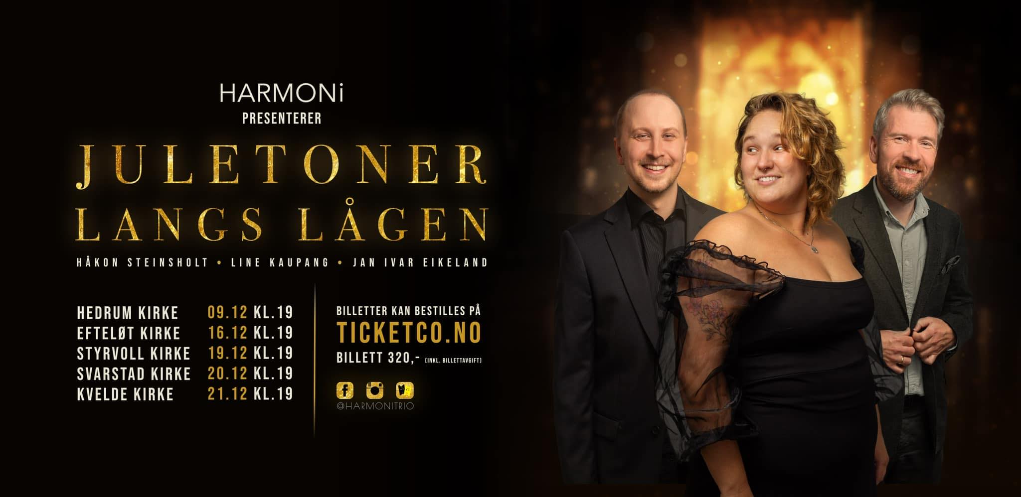 16.11.2022Den musikalske trioen HARMONi holder julekonserter i Hedrum, Kvelde og Svarstad i desember.