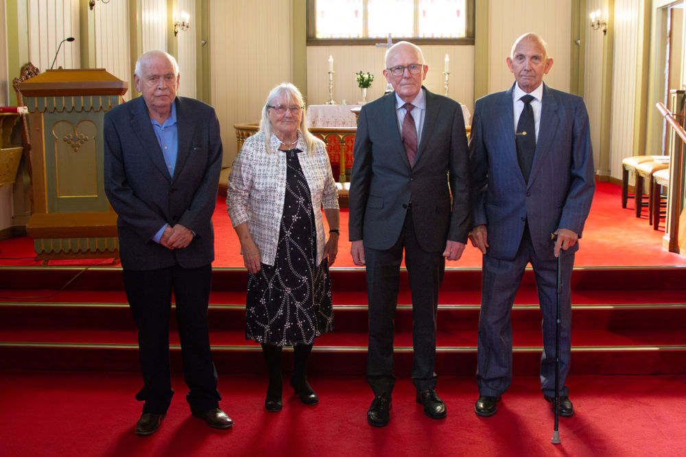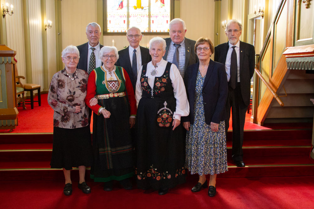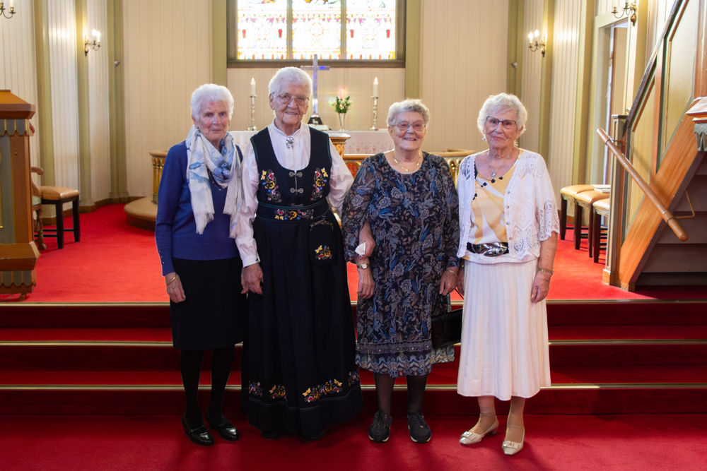 Etter gudstenesta vart det fotografering av kvart konfirmantkull. Dei eldste jubilantane var 95 år! Fire spreke damer som hadde 80-årsjubileum møtte fram denne dagen. Også 75-, 70-, 60- og 50-årsjubilantane stilte opp for fotografering før samlinga heldt fram i kyrkjelydssalen.