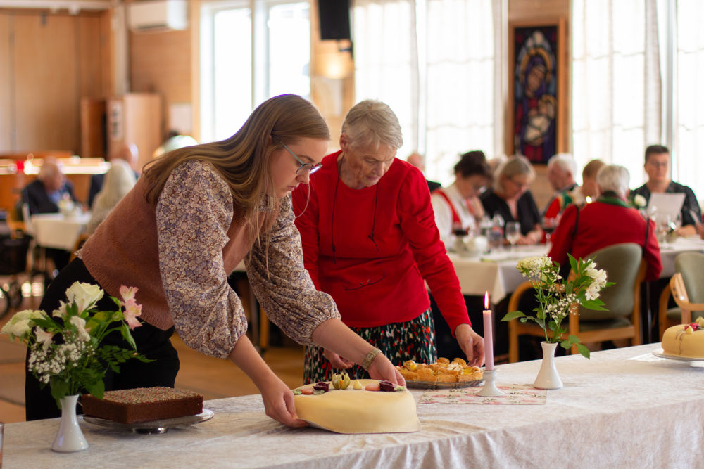 Etter middag vart det servert kaffi og kaker. Praten og latteren gjekk lett rundt borda, og mange delte gode minner frå konfirmasjonstida. Det vart ein hyggeleg og minnerik dag for jubilantane.