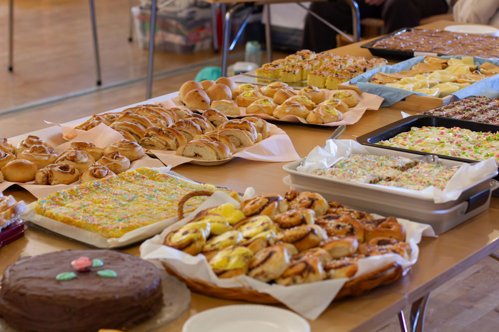 Langs eine veggen stod eit stort og freistande kakebord klart. Samstundes vart det gitt ei tydeleg melding: Det var berre lov å forsyne seg av kakene medan loddsalet gjekk føre seg. Dermed vart det både lodd og kaker i god basarånd. Det vart halde to rundar med åresal, der spenninga steig etter kvart som tala vart ropte opp. Dag-Olav Bjorøy hadde ansvaret for å annonsere loddtala og fortelje kva gevinstar som låg i potten. Dei flinke korjentene sprang rundt i kyrkja og delte ut gevinstane til dei heldige vinnarane.